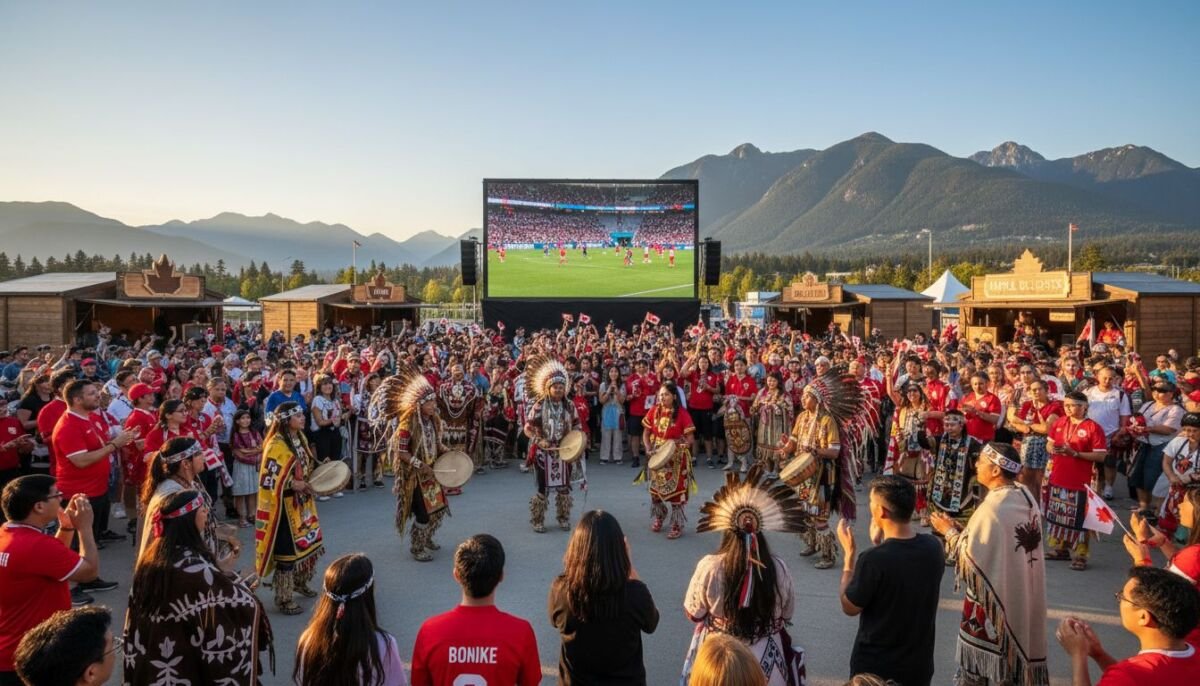 Aquí está el meollo del asunto: ‘Canada Celebrates’ no es solo un nombre bonito. Lanzado en enero de 2026, este programa transformará espacios públicos en festivales que inician el 11 de junio, coincidiendo con el pitido inicial del torneo, y se extenderán hasta el 19 de julio. Desde Vancouver hasta Halifax, 40 paradas gratuitas unirán a fans en una celebración que incluye música, comida diversa y, crucialmente, tradiciones indígenas. La afición canadiense integrará tradiciones indígenas en el Mundial 2026 mediante rituales que evocan la conexión con la tierra —piensa en bendiciones antes de los partidos o murales inspirados en petroglifos.