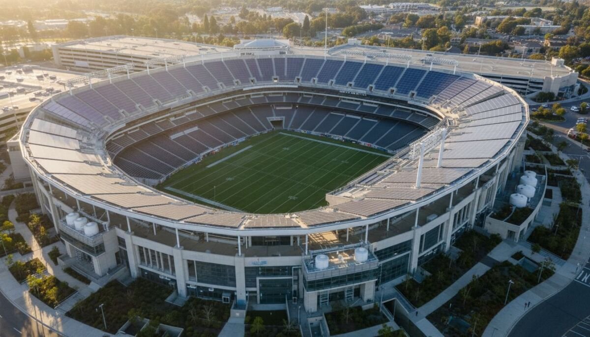 Camina conmigo por estos colosos. Levi’s Stadium en Santa Clara, con su capacidad de 70.909 espectadores, no es solo un templo del fútbol; es LEED Platino desde 2014. Su techo de ETFE translúcido corta el consumo energético en un 25%, y recolecta agua de lluvia para ahorrar 9 millones de galones al año. Imagina un partido de fase de grupos allí, con el sol filtrándose sin derrochar energía —puro fútbol sostenible.